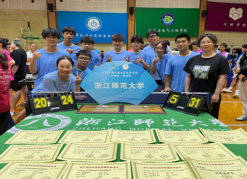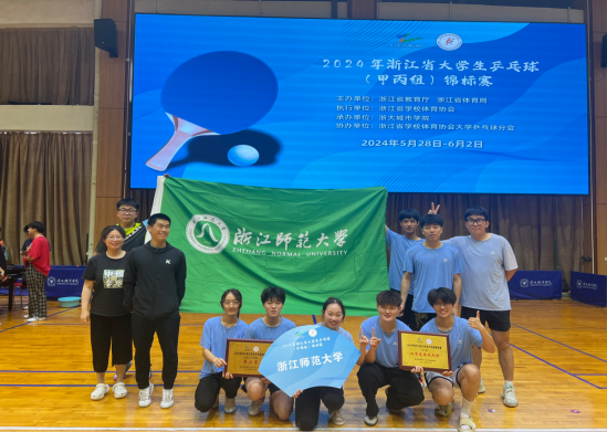5月28日至6月2日,我校乒乓球运动队在信光杰领队、姚梦醒教练、叶剑青教练和张弘超教练的带领下,参加了由浙江省教育厅、浙江省体育局主办,由浙大城市学院承办的浙江省大学生乒乓球锦标赛(甲丙组)。经过为期六天的奋勇拼搏,我校乒乓球队成绩斐然。